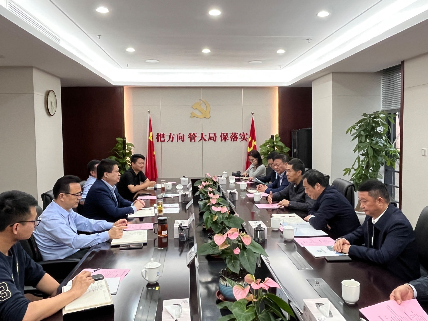 10月7日,省環(huán)保聯(lián)合會主席張杰到集團(tuán)調(diào)研,省生態(tài)環(huán)境集團(tuán)黨委書記、董事長羅太忠,黨委副書記、總經(jīng)理、董事王思軍出席調(diào)研座談會。