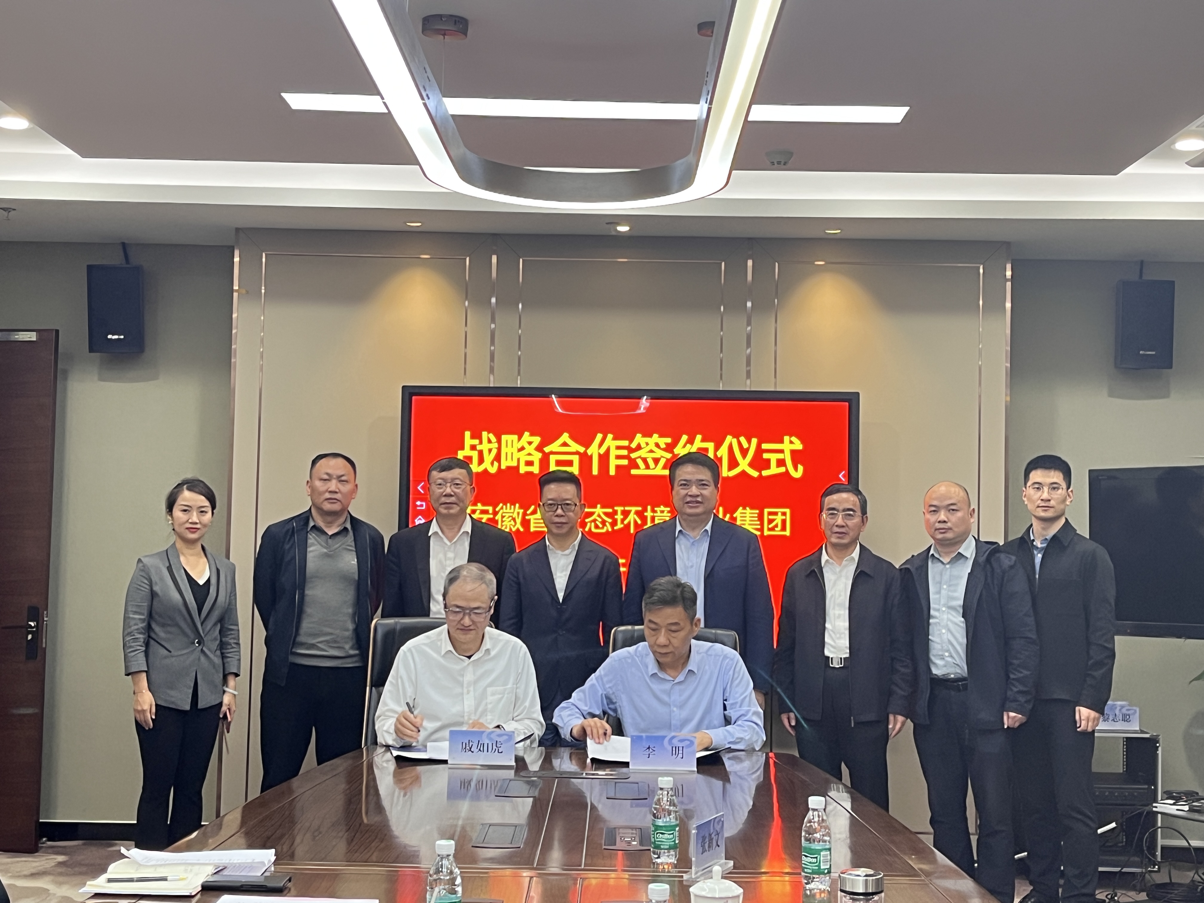 省生態(tài)環(huán)境集團(tuán)黨委委員、總會(huì)計(jì)師李明,興業(yè)銀行合肥分行戰(zhàn)略發(fā)展部總經(jīng)理戚如虎代表雙方簽署戰(zhàn)略合作協(xié)議,雙方有關(guān)部門負(fù)責(zé)同志參加座談會(huì)及簽約儀式。
