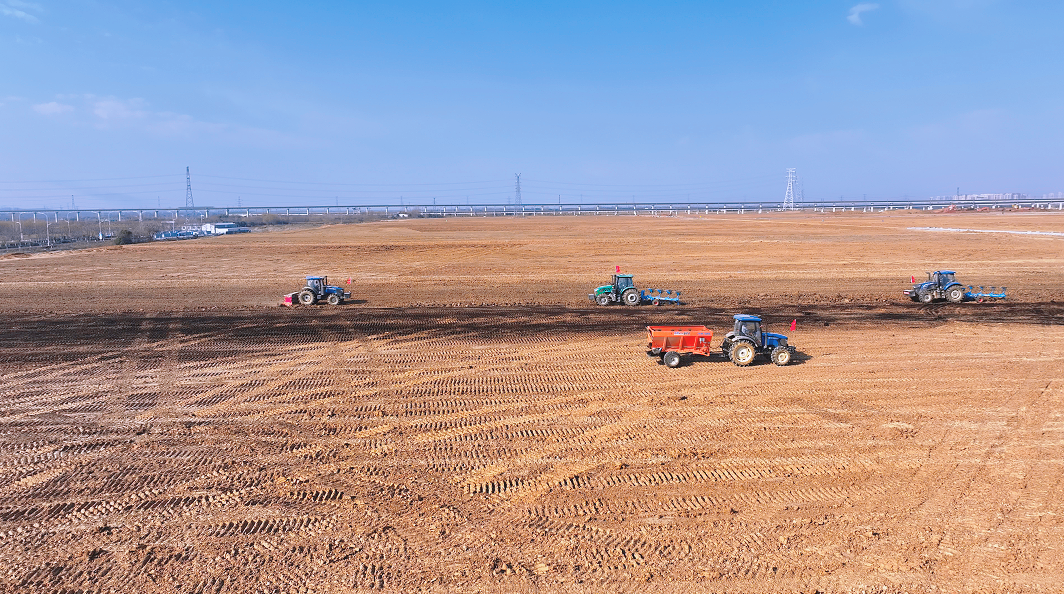 圖為引江濟(jì)淮工程高新區(qū)2號(hào)棄渣場(chǎng)臨時(shí)用地土地復(fù)墾項(xiàng)目土壤改良作業(yè)現(xiàn)場(chǎng)