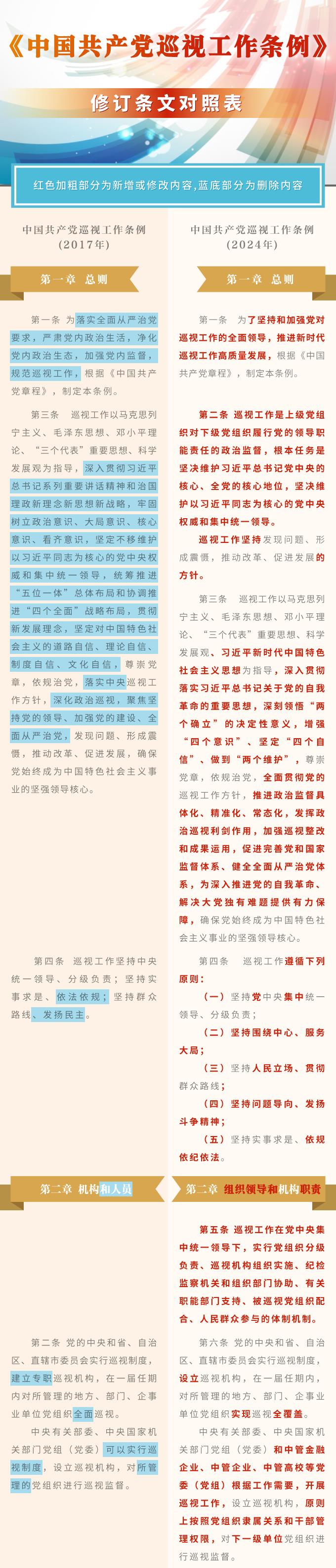 《中國共產(chǎn)黨巡視工作條例》修訂條文對照表