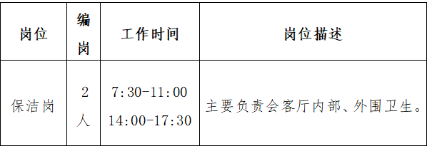 保潔崗:選派的保潔人員必須經(jīng)過專業(yè)技能培訓(xùn),身體健康,品行良好,無違法違紀(jì)犯罪前科,具有初中以上文化程度,年齡在25至45周歲、身高1.55米以上。保證城市展廳內(nèi)外部現(xiàn)場的衛(wèi)生環(huán)境。
