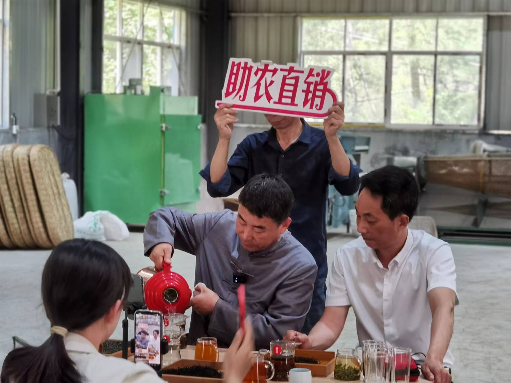5月7日上午,安徽天方茶葉集團董事長鄭孝和先生一行受邀來到西河村集體茶廠云谷茶廠,介紹了天方茶葉集團助農(nóng)網(wǎng)上直銷茶葉方法和經(jīng)驗,并對云谷茶廠網(wǎng)上直銷茶葉進行了培訓(xùn)和指導(dǎo)。上午11點,云谷茶廠室內(nèi)抖音直播銷售平臺正式上線,西河村駐村第一書記汪令富、村委負責(zé)人李運生同天方集團董事長鄭孝和帶著西河村生產(chǎn)的江北高山紅茶—天柱紅走進直播間,向網(wǎng)友們在線介紹了天柱紅的種植、采摘、品質(zhì)鑒別,經(jīng)過一個多小時的直播推介,銷售天柱紅紅茶近六千元。下午2點,網(wǎng)上直播助農(nóng)直銷茶葉活動改在茶園進行,通過實地高山茶園宣傳推介云谷茶廠生產(chǎn)的優(yōu)質(zhì)天柱紅紅茶和天柱玄月綠茶。